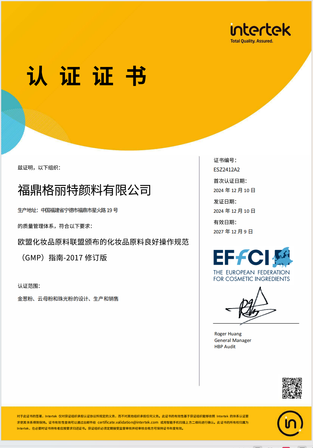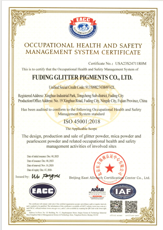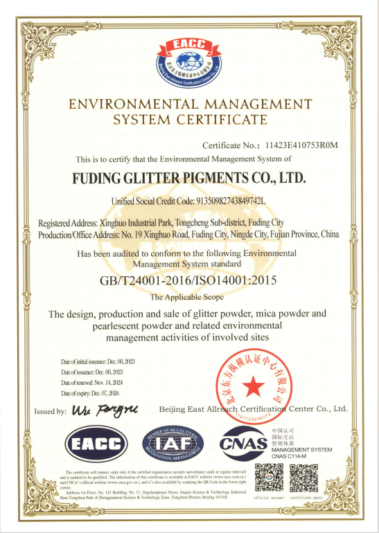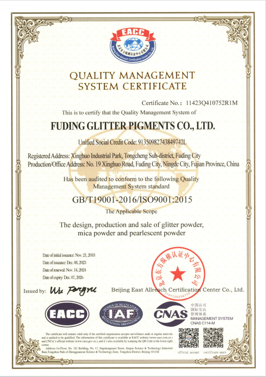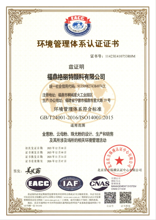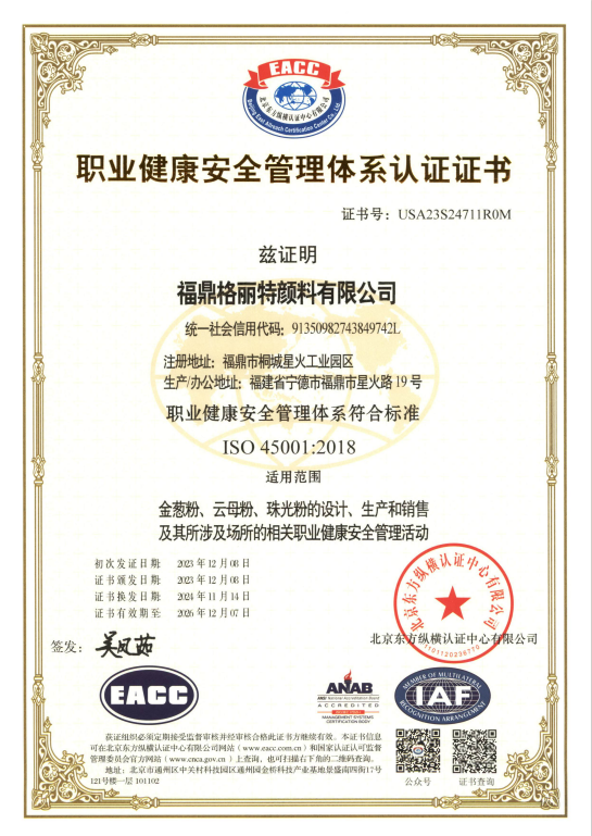 福鼎格丽特颜料有限公司认证证书